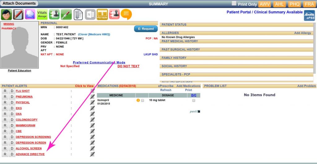 We have made a few changes to the EMR to help you with Advance Directives.